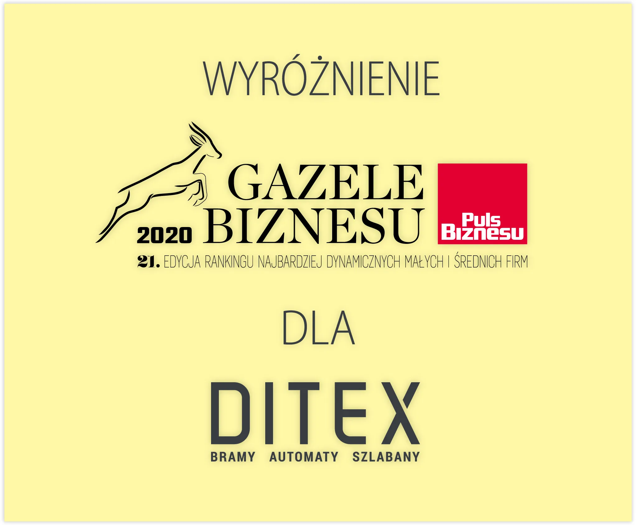 Firma Ditex wyróżniona w 21 edycji rankingu Gazele Biznesu za 2020 rok!