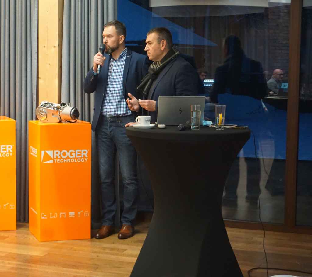 Część dotycząca szkolenia produktowo-technicznego prowadzona była przez Pana Roberto Dal Bianco przy współudziale naszego nowego kolegi Dariusza Kupicza, który pełnił rolę tłumacza. Uczestnicy mieli okazję poznać historię firmy Roger Technology i ludzi, którzy ją założyli, ich unikalną filozofię i specyfikę działania. Była to również świetna okazja, aby zobaczyć napędy, szlabany i akcesoria – które Roger Technology produkuje w swoich włoskich fabrykach – w akcji.