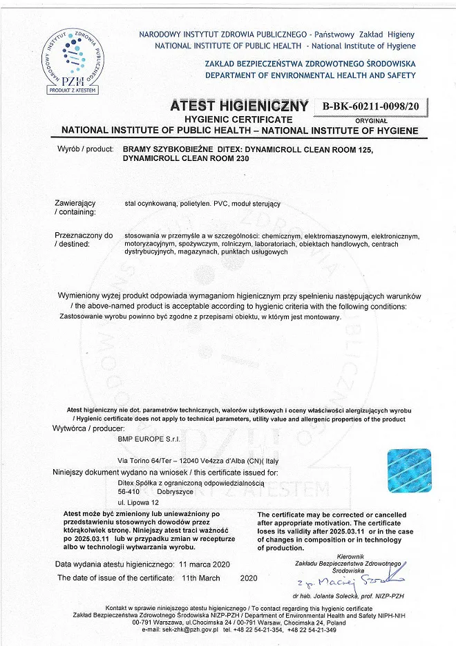 Bramy szybkobieżne CLEAN ROOM z atestem PZH