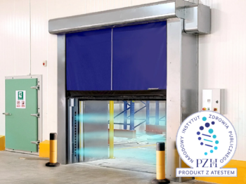 DynamicRoll® FRIGO 2 AIR to szybkobieżna brama rolowana z systemem samonaprawy złożona z 2 elastycznych kurtyn, które w pozycji zamkniętej tworzą izolacyjną barierę osuszanego powietrza. Technologia ta sprawia, że brama idealnie sprawdza się w branży mroźniczej, gdzie często konieczne jest oddzielenie środowisk o temperaturze dodatniej i ujemnej. Dzięki tej konstrukcji unika się skraplania i obladzania, czyli stwarzania sytuacji niebezpiecznych dla pracowników, a brama w takich warunkach pracuje prawidłowo. DynamicRoll® FRIGO 2 AIR może być montowana zarówno w dodatniej, jak i ujemnej temperaturze. Jest gwarancją bezpieczeństwa, dzięki specjalnie zaprojektowanemu systemowi prowadnic oraz zamków, który umożliwia wysunięcie kurtyny z prowadnic w przypadku uderzenia i automatyczny powrót kurtyny na swoje miejsce przy następnym cyklu pracy. Brama posiada atest PZH.