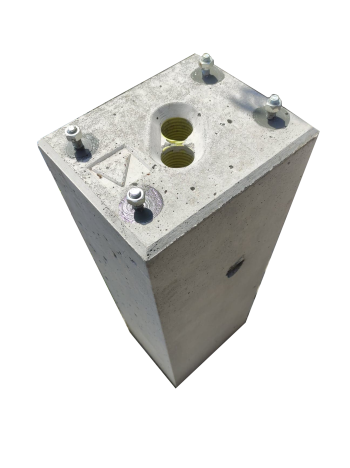 Fundament do szlabanu BIONIK4, wymiary 28,5 x 24 x 80 cm, waga około 130 kg.