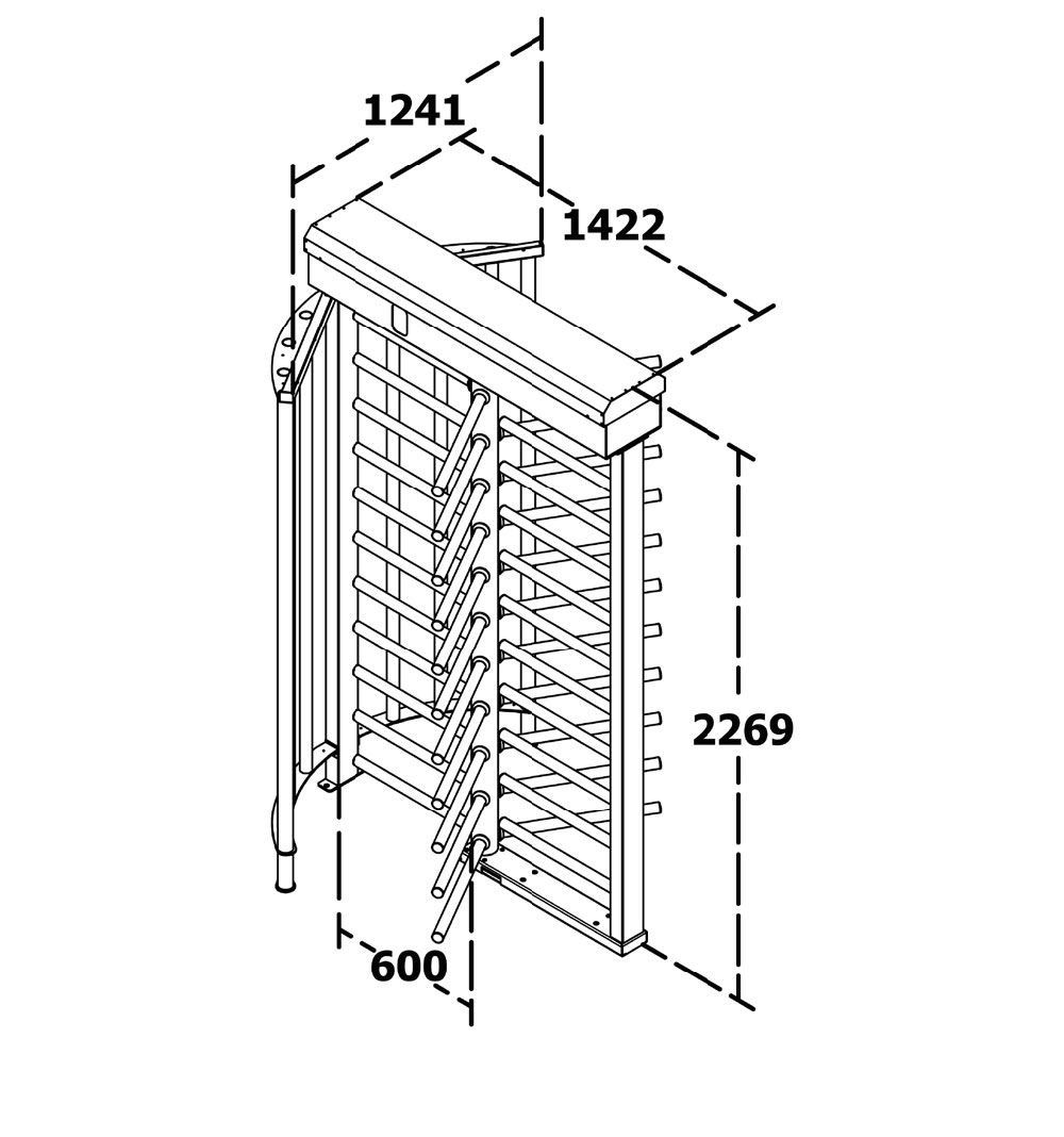 T 2500 D Single to pojedyncza, 3-ramienna wysoka bramka obrotowa do zastosowań wewnętrznych i zewnętrznych, m.in. na budowach, w zakładach przemysłowych i na stadionach. Wykonana ze stali nierdzewnej 304 lub malowanej (opcjonalnie 316), zapewnia trwałość i niezawodną pracę. Bramka pracuje dwukierunkowo, występuje w wersji pojedynczej lub podwójnej oraz integruje się z systemami kontroli dostępu. Po autoryzacji odblokowuje się i automatycznie blokuje po przejściu, umożliwiając ponad 30 przejść na minutę. W przypadku zaniku zasilania umożliwia swobodne przejście lub pracę z baterią.