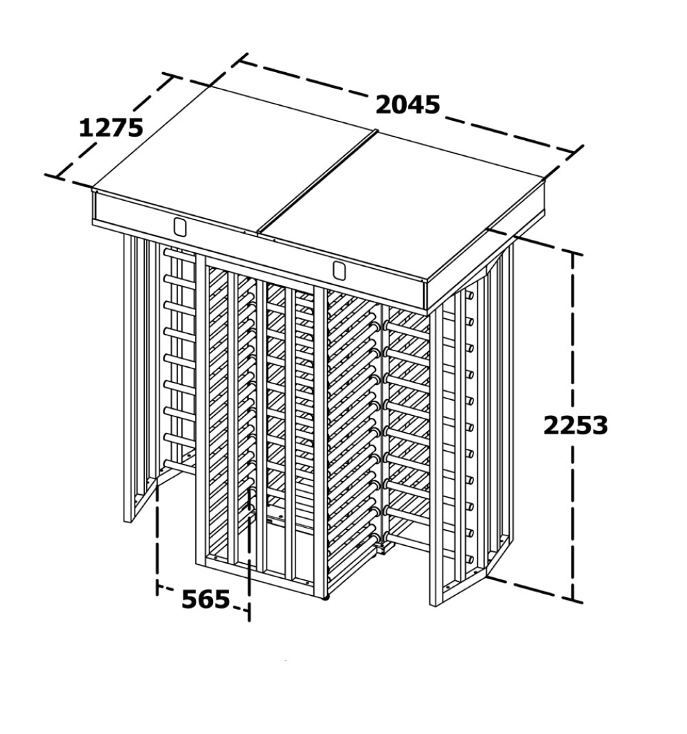 T 2500 K Double to podwójna, 4-ramienna wysoka bramka obrotowa do zastosowań wewnętrznych i zewnętrznych, m.in. na budowach, w zakładach przemysłowych, na stadionach i kampusach. Wykonana ze stali nierdzewnej 304 lub malowanej proszkowo (opcjonalnie 316), z wytrzymałym mechanizmem precyzyjnego odlewu. Po autoryzacji odblokowuje się i automatycznie blokuje po przejściu, umożliwiając ponad 30 przejść na minutę. W przypadku zaniku zasilania umożliwia swobodne przejście lub pracę z zasilaniem bateryjnym.