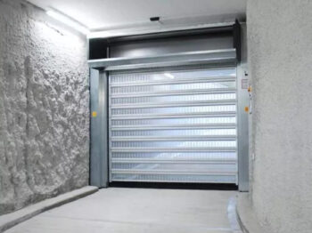 Płaszcz bramy spiralnej wykonany jest ze sztywnych paneli o grubości od 42 mm do nawet 100 mm, co przekłada się na wysoką izolacyjność cieplną, tak ważną w przypadku pomieszczeń chłodni i mroźni. Izolacyjne panele są dodatkowo wypełnione pianką PU, co skutecznie redukuje straty energii i zwiększa komfort cieplny wewnątrz obiektu. Konstrukcja spiralna pozwala na zachowanie maksymalnej prędkości otwierania i zamykania, co doceni każdy użytkownik – zwłaszcza w miejscach o dużym natężeniu ruchu.