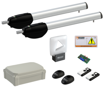 KIT FULL z napędami z silnikami bezszczotkowymi 36 V, do bram skrzydłowych o max długościach skrzydeł 4m+4m, z enkoderem cyfrowym, ogranicznikami mechanicznymi, regulowanymi uchwytami do przykręcenia do słupków oraz uchwytami mocowania do skrzydeł.