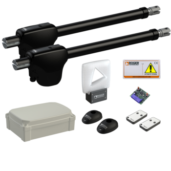 KIT FULL z napędami z silnikami bezszczotkowymi 24 V, do bram rozwiernych o max długościach skrzydeł 4m+4m, z enkoderem cyfrowym, regulowanymi uchwytami do przykręcenia do słupków, uchwytami mocowania do skrzydeł.