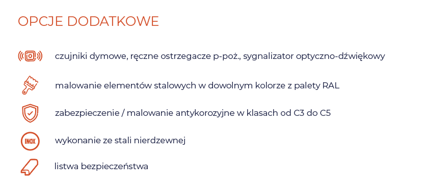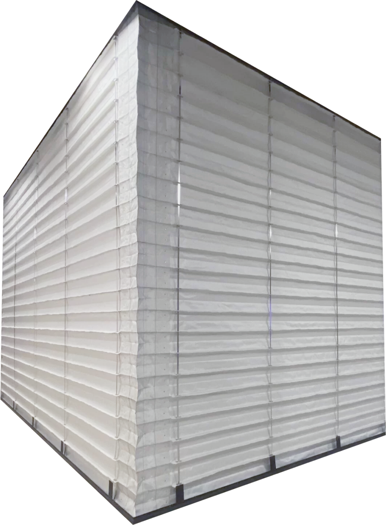 Modułowa konstrukcja kurtyn składanych umożliwia montaż w dowolnym miejscu i kształcie. Zastosowane silniki pożarowe zapewniają grawitacyjne zamknięcie się kurtyny nawet w przypadku braku zasilania, a zintegrowane zabezpieczenie anty-opadowe pozwala na bezpieczne i kontrolowane jej opadanie. Kurtyny wyposażone są w sterowanie z zestawem akumulatorów umożliwiające podłączenie do SAP (Systemu Alarmu Pożarowego).
