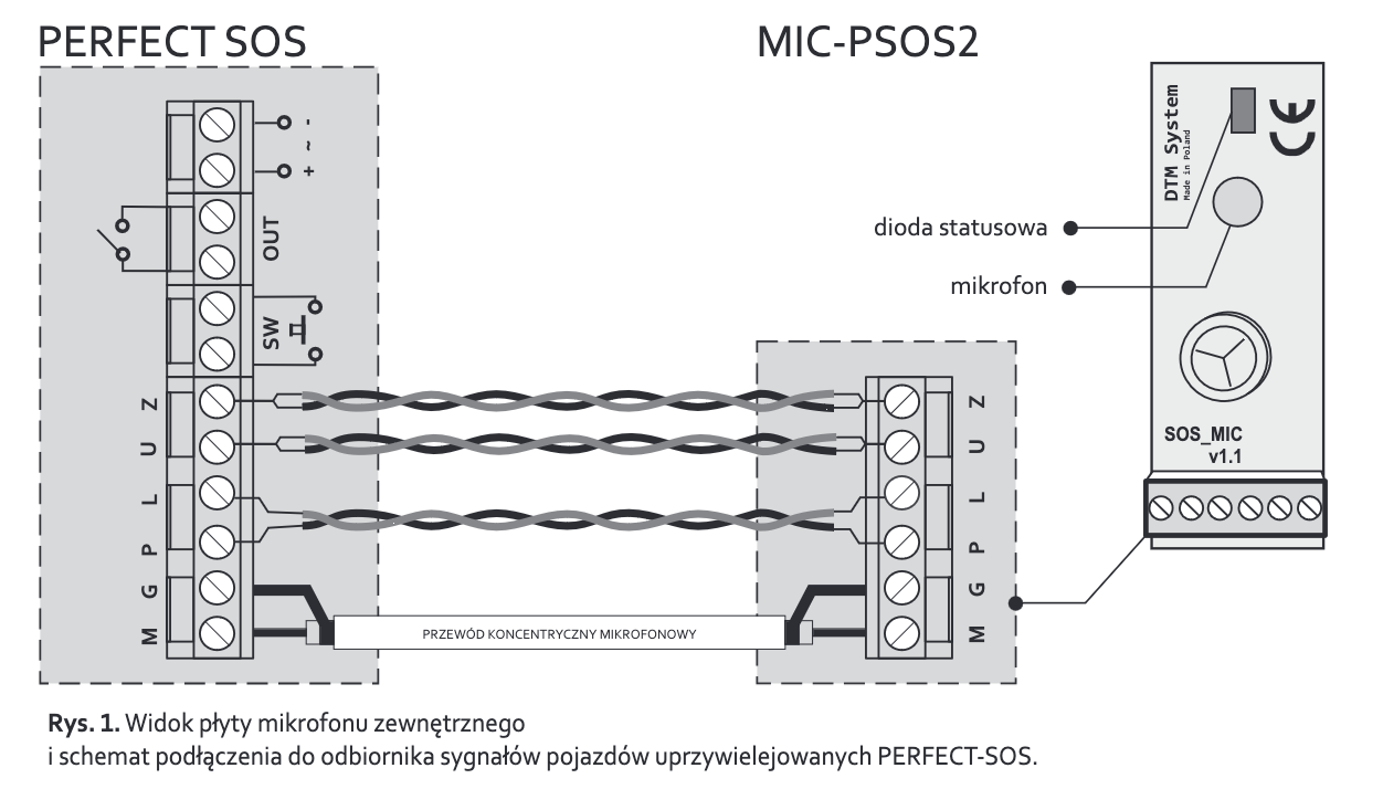 MIC-PSOS2 to dedykowany mikrofon zewnętrzny odbiornika sygnałów pojazdów uprzywilejowanych PERFECT-SOS. Znajdzie zastosowanie w miejscach gdzie występują niekorzystne warunki akustyczne i konieczne jest zamontowanie mikrofonu na zewnątrz.