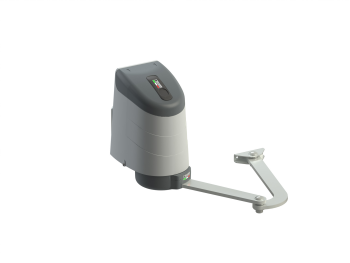 Napęd z silnikiem bezszczotkowy 24 V, z wbudowaną centralą B70/2ML, z ramieniem łamanym, do pracy bardzo intensywnej, do bram rozwiernych o max długości skrzydła 2,5 m, wersja z wbudowaną centralą sterującą, z oragnicznikami mechanicznymi na otwarcie i zamknięcie.