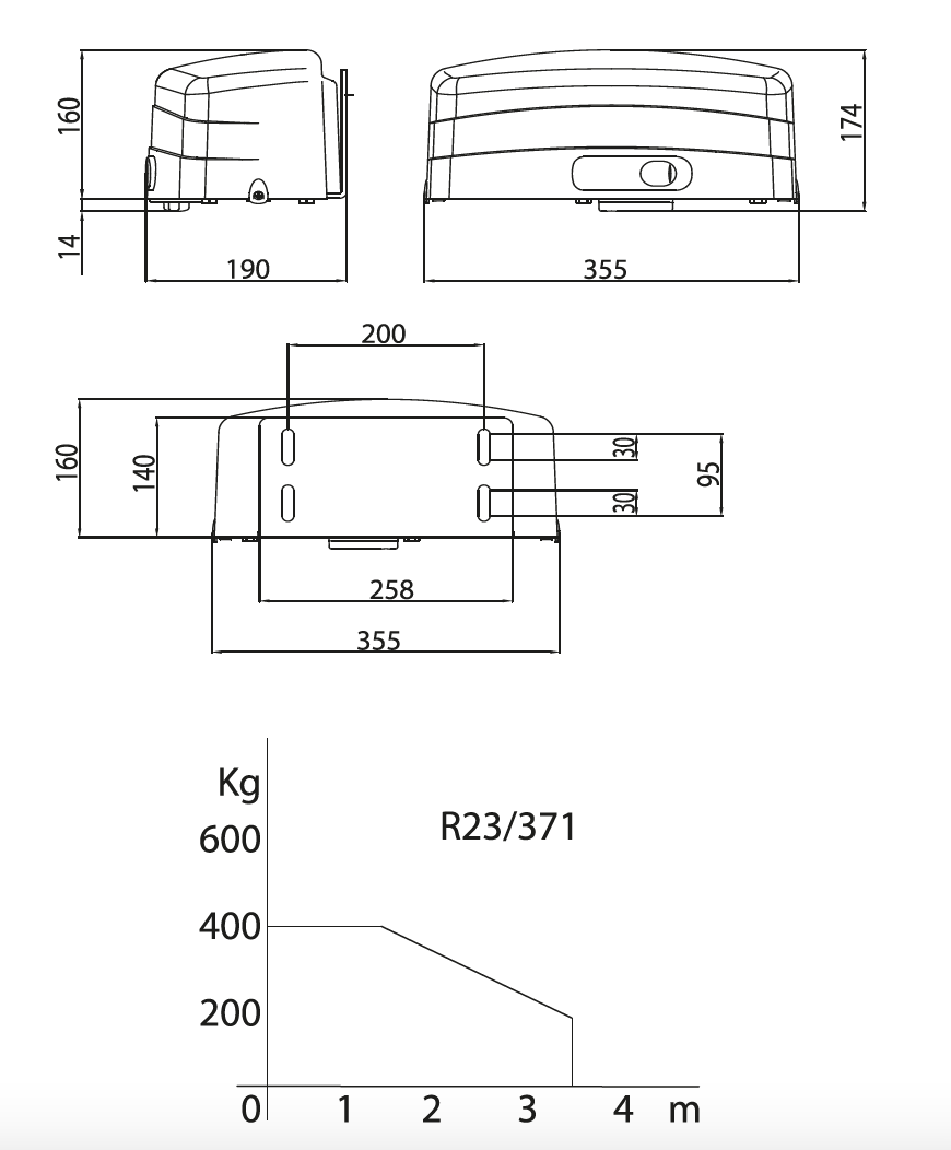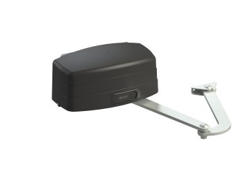 Napęd z silnikiem 230V, z ramieniem łamanym do bram skrzydłowych o max długości skrzydła 3,5 m, z ogranicznikami microswitch i uchwytami montażowymi.