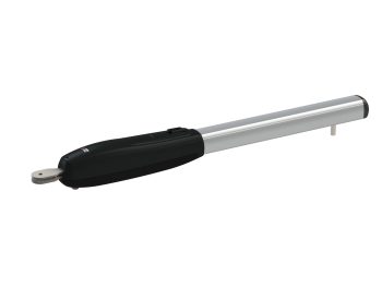 Napęd z silnikiem bezszczotkowym 36 V, do pracy bardzo intensywnej, do bram skrzydłowych o max długości skrzydła 7 m z enkoderem cyfrowym, ogranicznikami mechanicznymi, regulowanym uchwytem do przykręcenia do słupka oraz uchwytem mocowania do skrzydła.