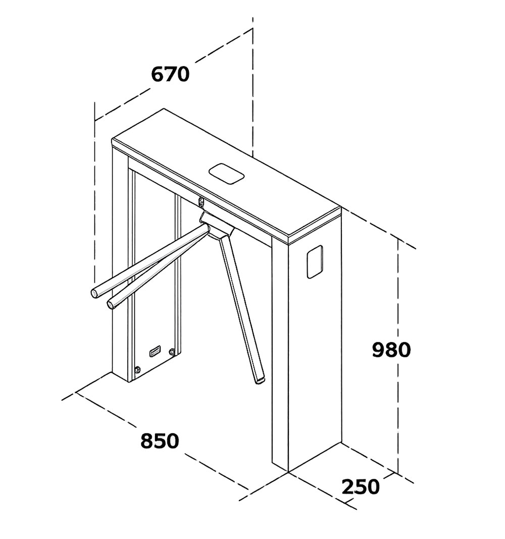 T 250 to klasyczny, elektromechaniczny tripod do obiektów o dużym natężeniu ruchu – terminali, uczelni, banków, biurowców, muzeów, obiektów sportowych i parków rozrywki. Charakteryzuje się standardową, profesjonalną formą, łatwą do wkomponowania w różne aranżacje wejść i stref kontroli dostępu. Konstrukcja wykonana jest ze stali nierdzewnej AISI 304 (ramiona i obudowa) z aluminiowym rdzeniem odpornym na korozję; dostępna jest także wersja ze stali AISI 316. Wewnętrzny mechanizm, produkowany w technologii precyzyjnego odlewania inwestycyjnego, zapewnia wysoką trwałość i niezawodność. Elektronika Makim umożliwia różne tryby pracy oraz integrację z systemami kontroli dostępu.